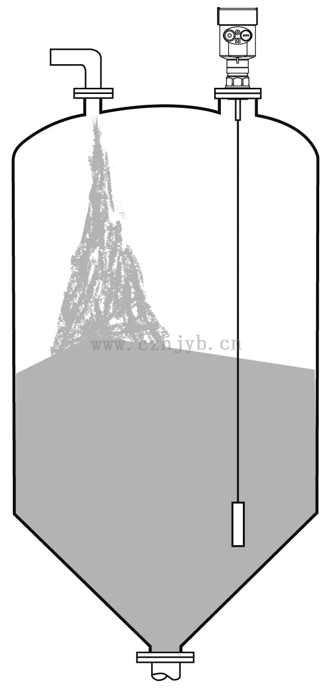在整個量程范圍內確定纜或棒不要接觸到內部障礙物,因此安裝時應盡可能避開罐內設施,如:人梯、限位開關、加熱設備、支架等。另外需注意纜或棒不得與加料料流相交。