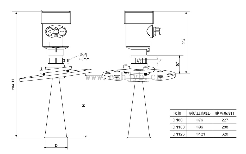 ● 天線尺寸小,便于安裝;非接觸雷達(dá),無磨損,無污染。